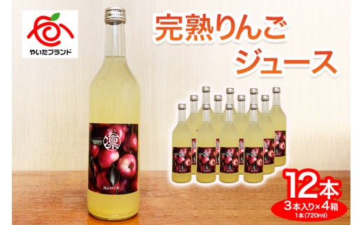 【定期便6回】完熟りんごジュース 12本 (3本×4箱)|林檎 リンゴ 果汁100% 産地直送 (毎月お届け)
