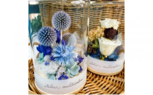 ガラスボトルフラワー ブルー【atelier multicolore】| ドライフラワー プリザーブドフラワー プレゼント ボトルフラワー 花束 誕生日 敬老の日 クリスマス ミルティコロール