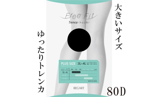 【フリーフィットシリーズ】ゆったりトレンカ80D 7L-8Lサイズ ブラック ストッキング パンツ 日用品 美容 生活用品 健康用品 健康グッズ スポーツ 旅行 トラベル 抗菌防臭加工