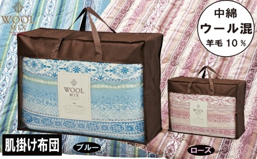 - 【G0679】【シングル】肌掛け布団(ウール10%混わたを中綿に使用したやさしい暖かさの肌掛け布団)(サイズ140×190cm):配送情報備考 ブルー