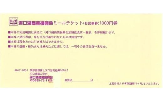 河口湖商業振興会ミール・チケット(お食事券)6,000円分