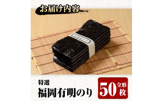 特選福岡有明のり(全形50枚)のり 海苔 全形 福岡有明のり 有明海 手巻き 乾物 のり巻き 巻き寿司 常温 常温保存【ksg1326】【城戸酒店】