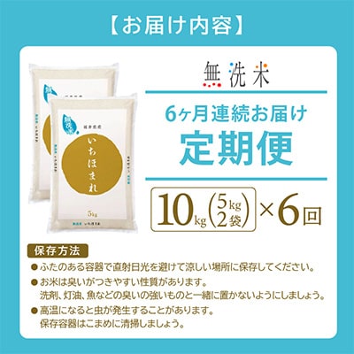 - 2023年6月発送開始『定期便』≪6か月連続お届け≫無洗米 いちほまれ 10kg 全6回【5086462】