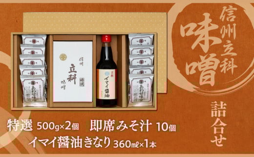 3-A 詰め合わせセット (特選みそ500g×2箱、イマイ醤油きなり360ml×1本、即席みそ汁×10個)