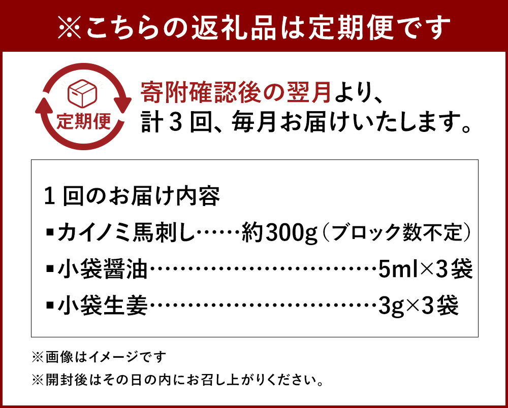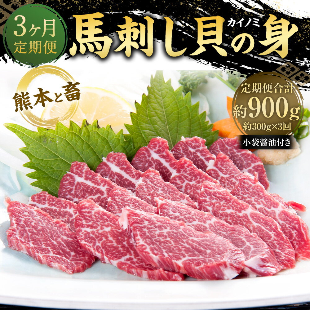 - 【ふるさと納税】【3ヶ月定期便】【熊本と畜】馬刺し 貝の身 カイノミ 合計約900g 約300g×3回 醤油・生姜付 馬刺 ばさし 生食 生肉 馬肉 冷凍 送料無料