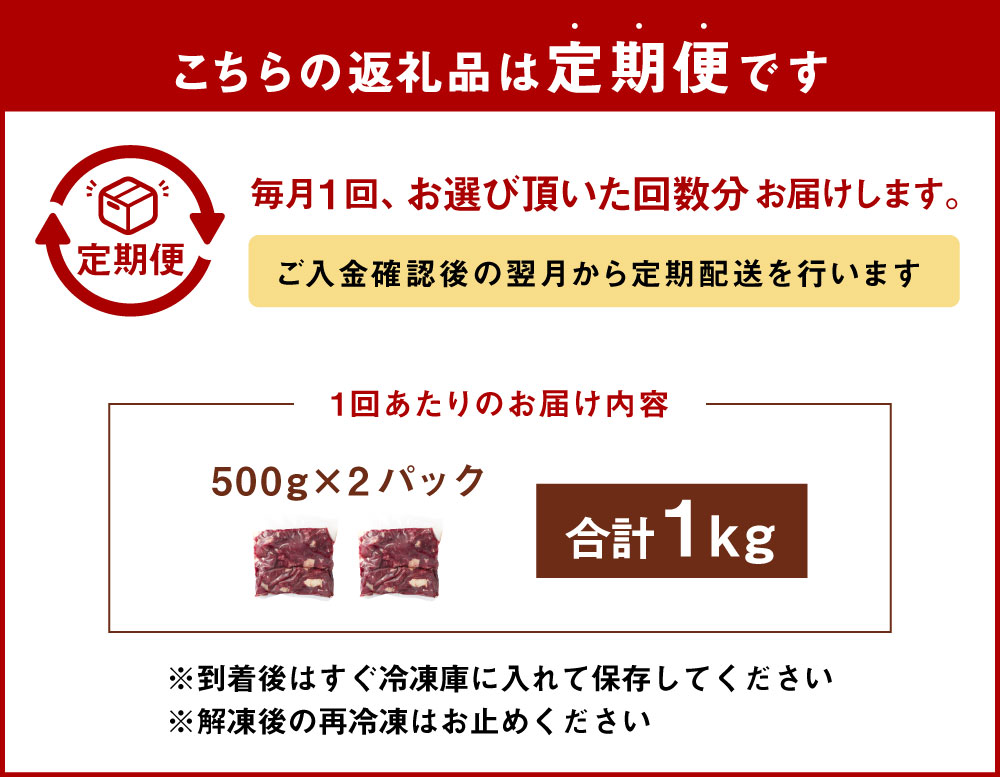 - 【ふるさと納税】<選べる定期便>【3ヶ月または6ヶ月定期便】 馬スジ 1回あたり合計約1kg(約500g×2)馬肉 桜肉 すじ肉 スジ肉 煮込み料理 カレー 和風 洋風 冷凍 相良村 送料無料