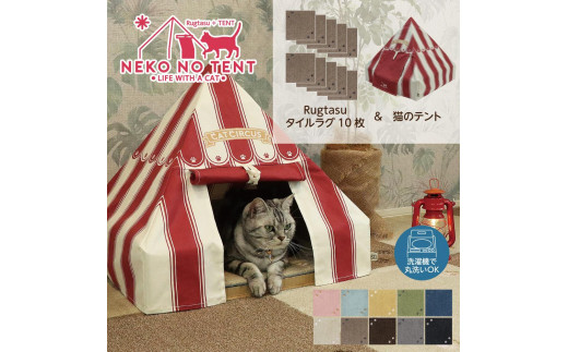 - Rugtasu ラグタスタイルラグ てくてく肉球10枚&猫のテント サーカスデザインレッドセット