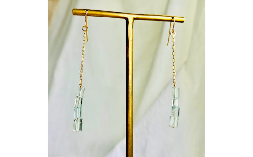 - ピアス ice blue K14gf ロング チェーン