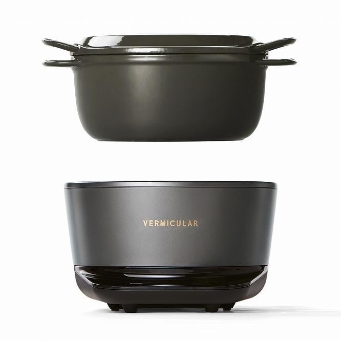 高気密の鋳物ホーロー鍋「バーミキュラ」の炊飯器です。鍋炊きで悩ましい火加減の課題をクリアするため、専用のポットヒーターを開発。炎が鍋を包み込む釜土のような加熱を実現し、ごはんを驚くほどおいしく炊きあげます。低温調理や無水調理、炒め調理も発酵もできる「ライスポット」と全く同じ性能で、異なるのはサイズのみ。最大3合のお米が炊けます。