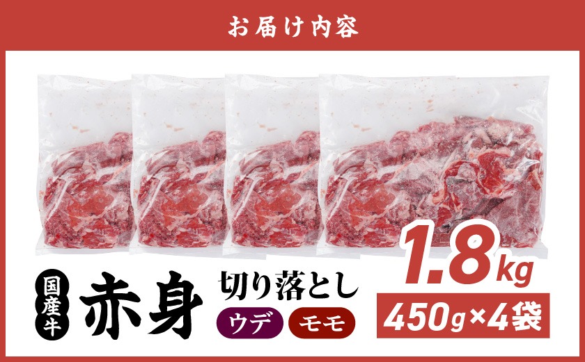 国産牛 赤身切り落とし1.8kg(450g×4パック)