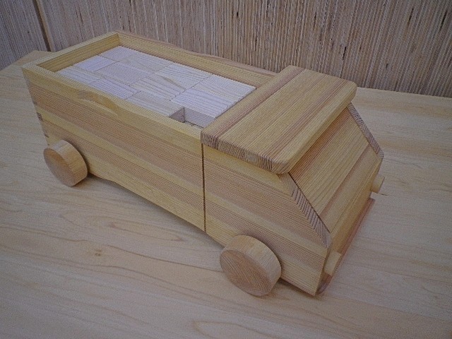 初節句のお祝いに最適♪知育玩具【熊野杉のトラック型の積み木58P】【kmkn0002】