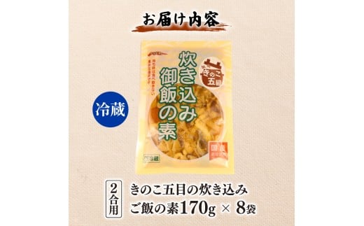 - 【先行予約】 きのこ五目の炊き込みご飯 2合用 170g 8袋 無添加 保存料 着色料 不使用 炊き込みご飯の素 秋 きのこ 炊き込みご飯 ご飯 お米 簡単 手軽 かじかわ農場食品 新潟県 新発田市 kajikawa011