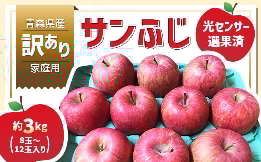 - 青森県産「サンふじ」家庭用 訳あり 光センサー選果済 約3kg【1635391】