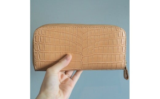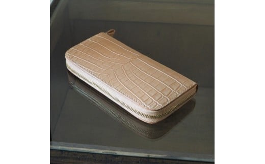 - クロコダイルラウンドファスナー長財布 生成り色仕様 本革 クロコダイル ヌメ革 鰐 高級 ラウンドファスナー 財布 レザー 長財布 ワニ本革 ワニ革 手作り メンズ レディース プレゼント ギフト 贈り物 金運 風水 八幡市 京都 革工房むくり