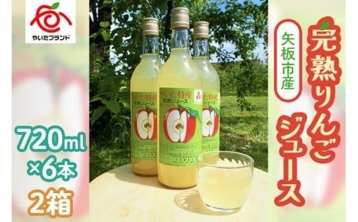 - 【定期便6回】 矢板市産 完熟りんごジュース《720ml×6本 2箱》|林檎 リンゴ 果汁100% 産地直送 (毎月お届け)