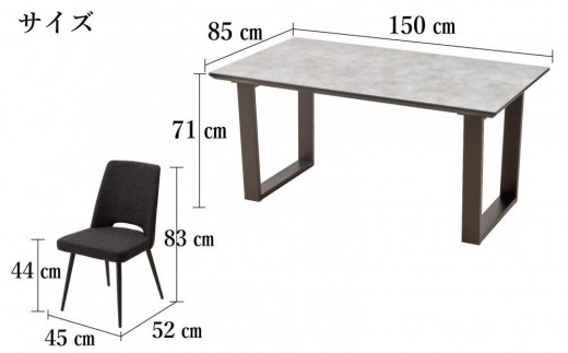 - 150ガラストップテーブルとDC-5イス4脚の5点セット【2本脚/天板:グレー/張地:布ブラック】