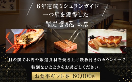 神戸牛ステーキ鉄板焼 雪月花本店 お食事ギフト券(60,000円)