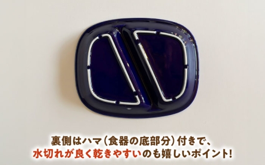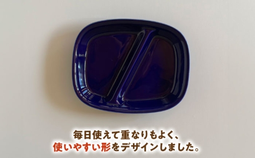 【美濃焼】 ランチプレート 2つ仕切り 四角 21cm 1枚 ネイビーつやあり / 窯元ロングアイランド [AZCU018]