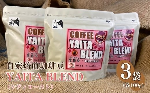 - [やいたブランド認証品] 自家焙煎珈琲豆 YAITA BLEND《TSUTSUJI》(シティロースト) 100g×3袋【粉でお届け】|SAKURA黒猫堂 珈琲 焙煎 コーヒー豆 矢板市 やいたブランド