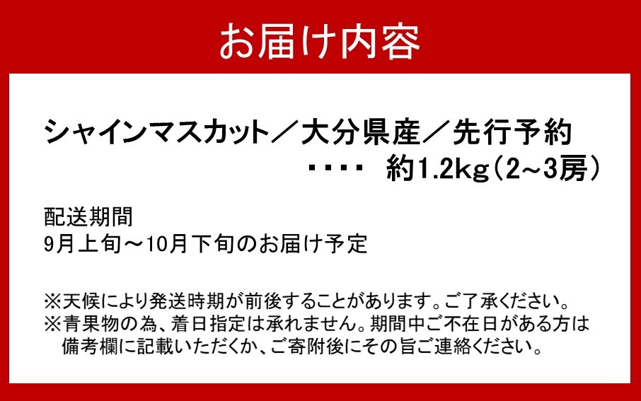 【先行予約】おおいたの豊潤シャインマスカット約1.2㎏_2609R