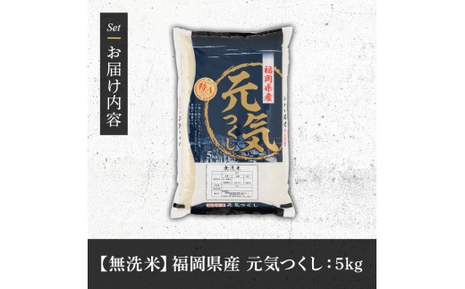 - 《無洗米》福岡県産ブランド米「元気つくし」(5kg) 無洗米 米 お米 おこめ ごはん げんきつくし ご飯 常温 福岡県産 ブランド米 常温 常温保存 おにぎり おむすび お弁当 ライス【朝ごはん本舗】as05-057
