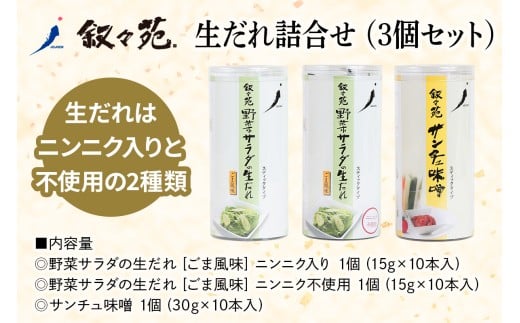 - 叙々苑 生だれシリーズ詰合せ (3個セット)|たれ ドレッシング [0931]