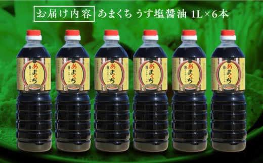 リピーター続出のあまくちうす塩醤油 1L×6本 醤油 うす塩 健康 濃口 和食 醤油 しょう油 しょうゆ お醤油 セット 詰め合わせ 調味料 大豆 発酵食品 刺身 煮物 だし だし醤油 出汁醤油 出汁 濃口 濃い口 こいくち 安心 安全 手作り コク 旨味 国産 料理 グルメ 保存 リピート ギフト 人気 高品質 好評 広島県産 <濱口醤油>江田島市[XAA046]