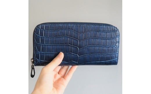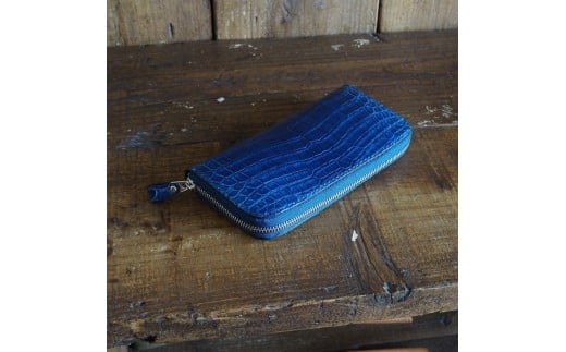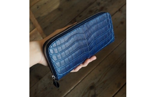- クロコダイルラウンドファスナー長財布 藍染め仕様 本革 クロコダイル ヌメ革 鰐 高級 ラウンドファスナー 財布 レザー 長財布 ワニ本革 ワニ革 手作り メンズ レディース プレゼント ギフト 贈り物 金運 風水 八幡市 京都 革工房むくり