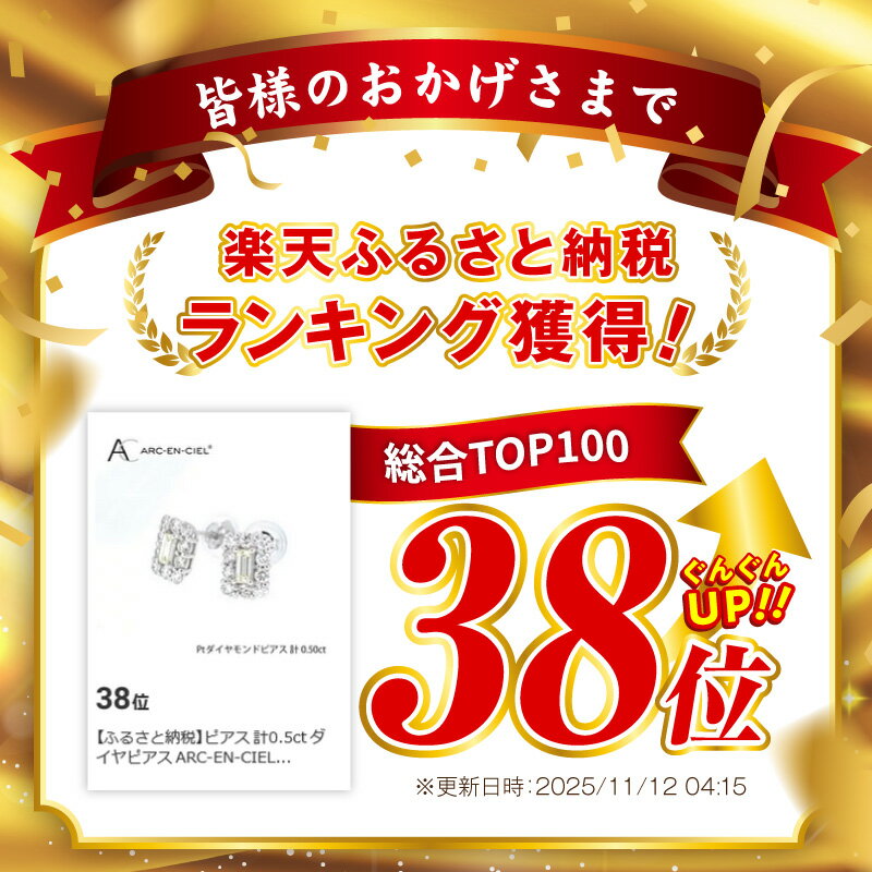 【ふるさと納税】【8/1~価格改定】 ピアス 計0.5ct ダイヤピアス ARC-EN-CIEL プラチナ バゲットカット ラウンドブリリアントカット 直付けタイプ コンパクト ジュエリー 華やか 鑑別書付き シリコン付きキャッチ プレゼント レディース ギフト 大阪 泉佐野市 送料無料