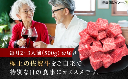 【3回定期便】佐賀牛 サイコロステーキ 500g /MKミート武雄 [UEM025]