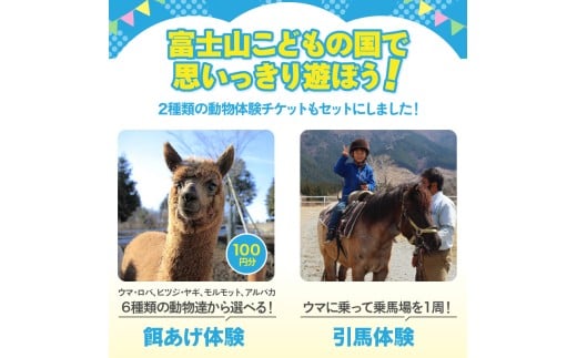 富士山こどもの国 入園券+乗物券&動物体験セット 4名 餌あげ体験 引馬体験 動物と触れ合う アスレチック マウンテンバイクコース カヌー体験 変わり種自転車 お出かけ 思い出 旅行 トラベル 静岡県 富士市 [sf003-003]