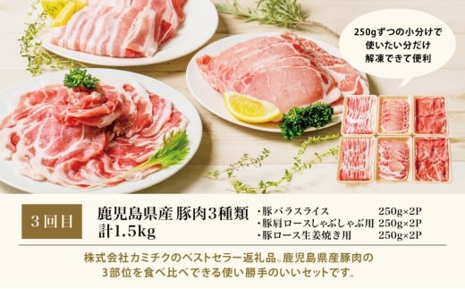 - 【 定期便 】 畜産王国 鹿児島の厳選 お肉 3種(全3回)人気のお肉返礼品を楽しめる 3種類 鹿児島県産 黒毛和牛 牛肉 豚肉 黒豚 すき焼き しゃぶしゃぶ ロース 肩ロース 豚バラ バラスライス お肉 冷凍 小分け 定期便 定期配送 セット