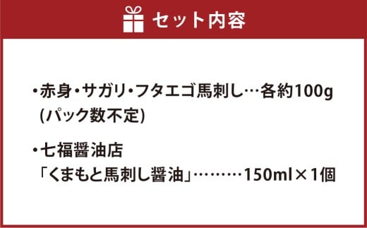 【阿蘇牧場】阿蘇馬 馬刺し3種(赤身・サガリ・フタエゴ) 約300g 専用醤油付き(150ml×1本)セット 詰め合わせ 赤身 サガリ フタエゴ 馬刺し 肉 お肉 馬肉 醤油付き 熊本県 高森町