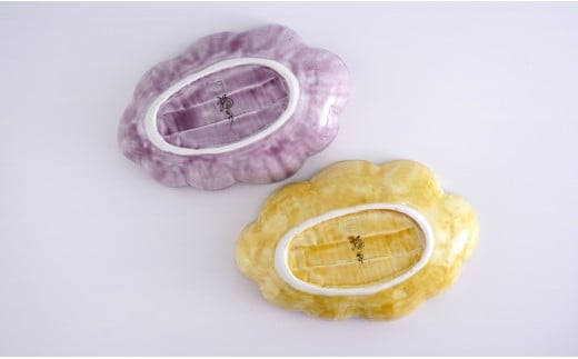 - 有田焼 泉黄・紫コーチ 変形 20cm 深皿 (パスタ皿) 2枚 セット【月桃庵】 モダン 黄 紫 和食器 おしゃれ ギフト パスタ皿 60000円 6万円 A60-100