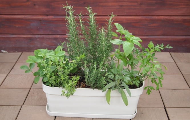 ハーブ7種寄せ植え(白鉢・受皿付き)