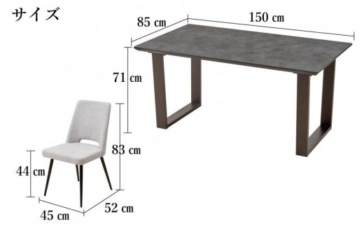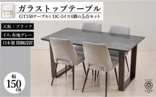 - 150ガラストップテーブルとDC-5イス4脚の5点セット【2本脚/天板:ブラック/張地:布グレー】