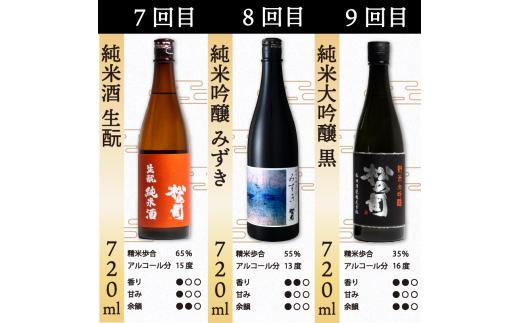 - 定期便 日本酒 松の司 9本 (1種類×9回) 720ml 「純米酒」「楽」「AZOLLA50」「特別純米酒」「純米吟醸」「陶酔」「生酛純米酒」「みずき」「黒」 父の日 金賞 受賞酒造 飲み比べ お酒 日本酒 酒 松瀬酒造 人気日本酒 おすすめ日本酒 定番 御贈答 銘酒 贈答品 滋賀県 竜王町 ふるさと納税 父の日