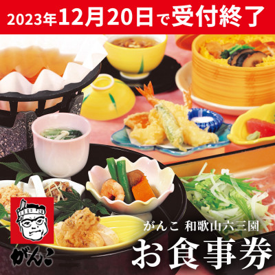 - がんこ和歌山六三園 お食事券 3,000円利用券×3枚【1158549】