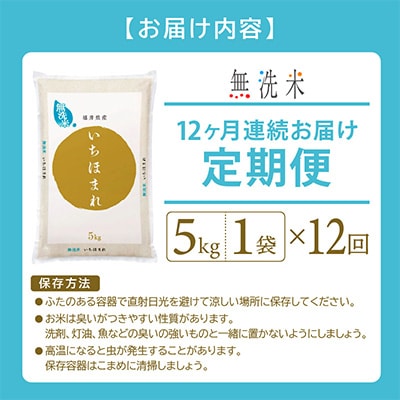 2023年10月発送開始『定期便』≪12か月連続お届け≫無洗米 いちほまれ 5kg 全12回【5086490】