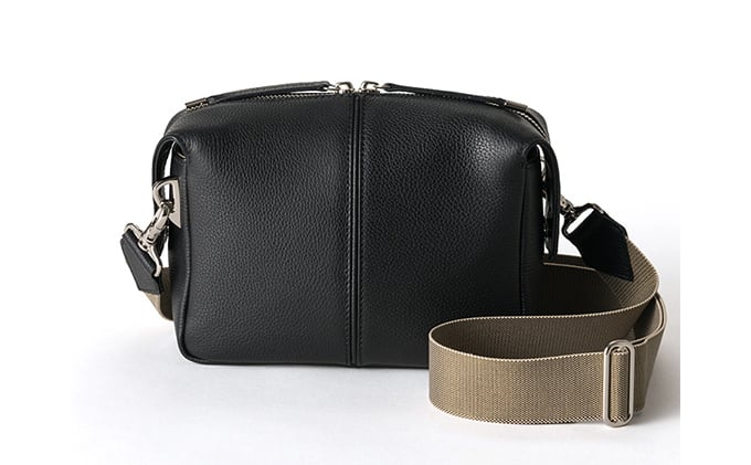 倉敷産帆布×本革 2way トートバッグタグ(黒×ブラウン)◇