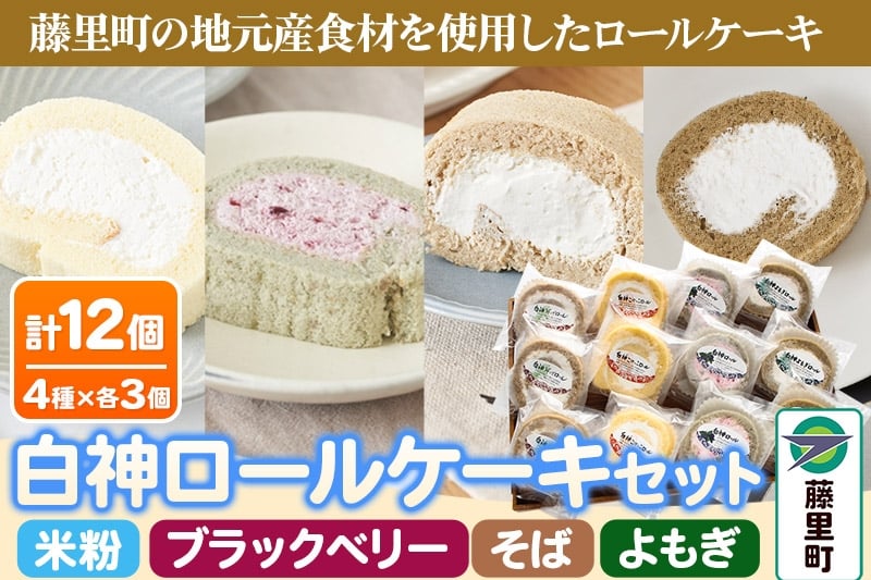 白神ロールケーキ 詰合せ 合計12個 そば こめっこ ブラックベリー よもぎ 4種×各3個 ケーキ スイーツ