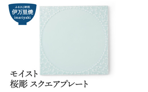 【伊万里焼】モイスト 桜彫 スクエアプレート 028-H1186