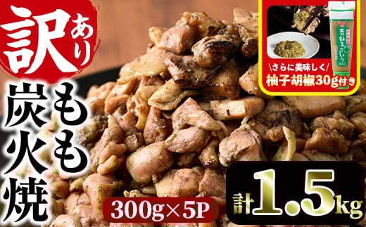 <訳あり>もも炭火焼き(柚子胡椒 付き・計1.5kg・300g×5P)炭火焼 小分け 真空パック おつまみ 鶏肉 とり肉 鳥肉 おつまみ おかず 柚子胡椒 モモ肉 冷凍【V-36】【味鶏フーズ】
