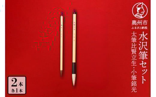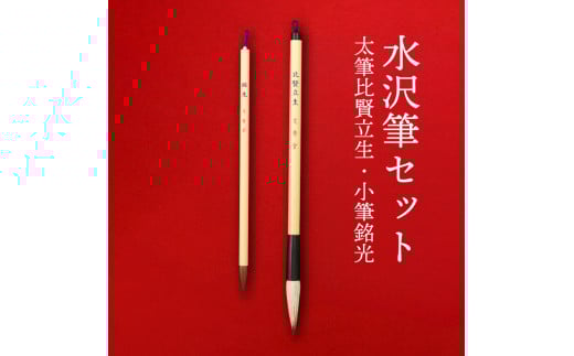 - 水沢筆セット(太筆比賢立生1本・小筆銘光1本)書道 伝統工芸品 伝統350年 文房具 日用品 雑貨 毛筆 太筆 小筆 習字 文秀堂 [BS031]