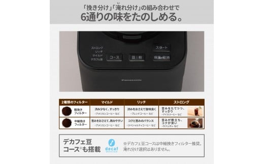 - パナソニック コーヒーメーカー 全自動 ミル付き 沸騰浄水機能 デカフェ豆コース搭載 NC-A58-K ブラック