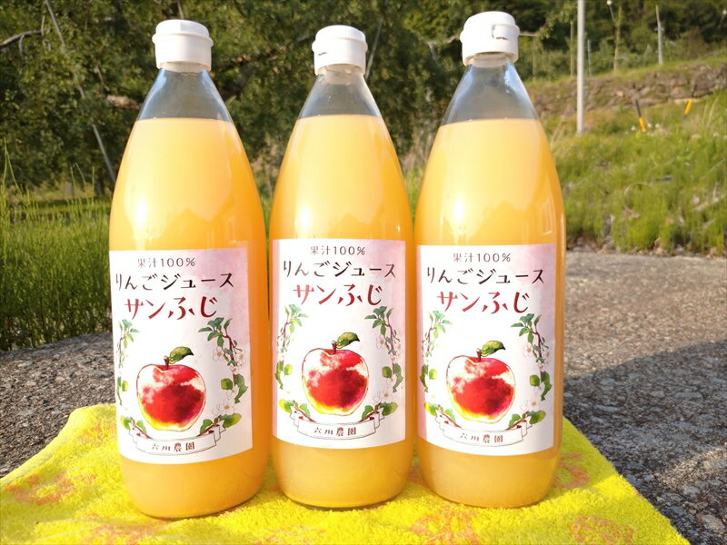 - 【ふるさと納税】長野県産サンふじ りんごジュース 1000ml×3本 信州 果物 100%果汁(沖縄県・離島は配送不可)【当園にて愛情たっぷりに育てたりんご そのまま皮ごと絞ったストレート リンゴジュース アップルジュース 林檎 フルーツ 国産 長野県 佐久市 】