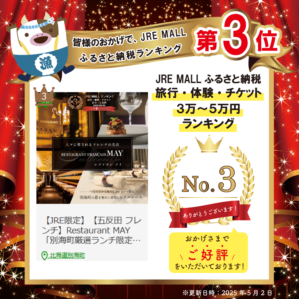 【JRE限定】ランキング第3位獲得! 【五反田 フレンチ】Restaurant MAY「別海町厳選ランチ限定コース」食事券1名様分 ※2名以上で利用可【CC0000075】
