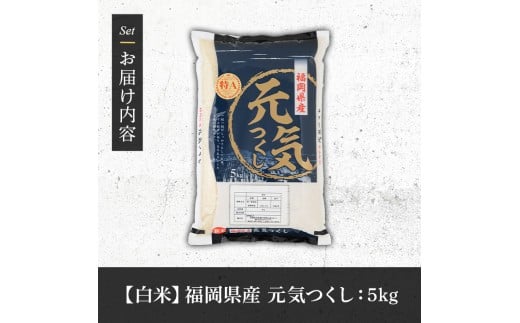 - 《白米》福岡県産ブランド米「元気つくし」(5kg) 白米 米 お米 おこめ ごはん げんきつくし ご飯 常温 福岡県産 ブランド米 常温 常温保存 おにぎり おむすび お弁当 ライス【朝ごはん本舗】as05-054