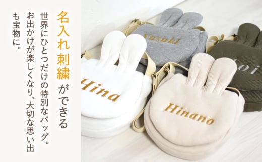 【杢グレー×シルバー】ワッフル素材 うさミミ キッズ ショルダーバッグ【coco plus an factory】[OCR065]