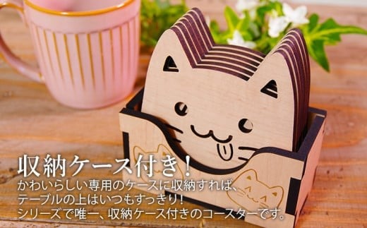 - 木製コースター ネコ型 6枚セット CK013